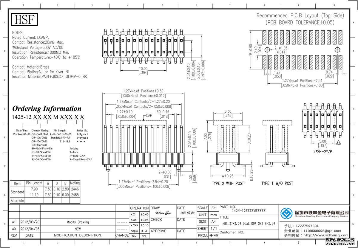 產(chǎn)品分類:排針連接器 產(chǎn)品規(guī)格:1.27*2.54MM 雙排 排針 定制 生產(chǎn) 技術(shù)參數(shù):額定電流:1.0amp電流電阻:20m最大絕緣電阻:1000m承受電壓:AC 500V /分鐘工作溫度:40﹣℃+ 105℃接觸材料: