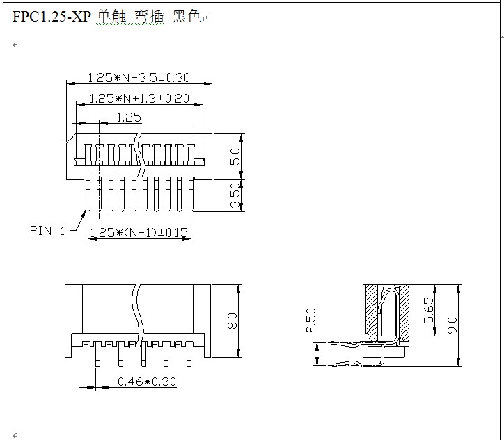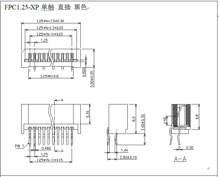產(chǎn)品類(lèi)型 FPC1.25-XP 間距 1.25mm