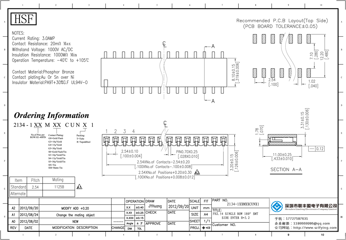 產(chǎn)品分類:排母連接器 產(chǎn)品規(guī)格:聯(lián)豐盈 2.54MM 單排 180 SMT 排母 產(chǎn)品介紹:額定電流:3.0amp電流電阻:20m最大絕緣電阻:1000mmin耐壓:1000V AC /分鐘工作溫度:40﹣℃+ 105℃接觸材料:磷