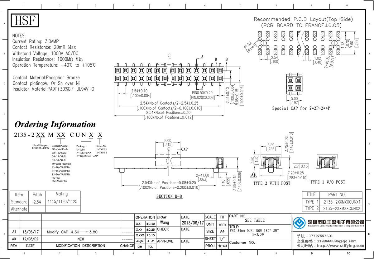 產(chǎn)品分類:排母連接器 產(chǎn)品規(guī)格:聯(lián)豐盈 UL認(rèn)證 2.54MM H=3.5MM 雙排 180 SMT 排母 廠家 產(chǎn)品介紹:額定電流:3.0amp電流電阻:20m最大絕緣電阻:1000mmin耐壓:1000V AC /分鐘工作溫度:40﹣℃