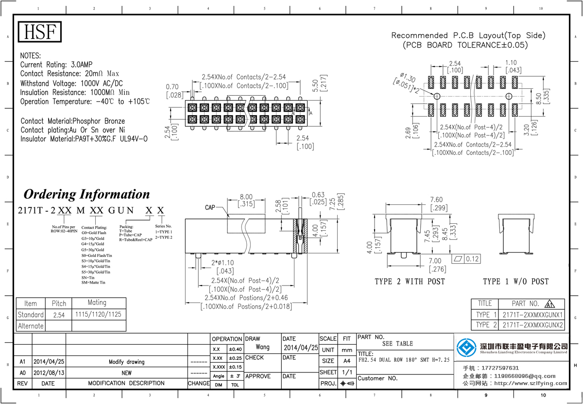 產品分類:排母連接器 產品規(guī)格:2.54MM H=7.1MM 上插式 2*7P 雙排 180 SMT 排母 產品介紹:額定電流:3.0amp電流電阻:20m最大絕緣電阻:1000mmin耐壓:1000V AC /分鐘工作溫度:40﹣℃+ 105℃接觸
