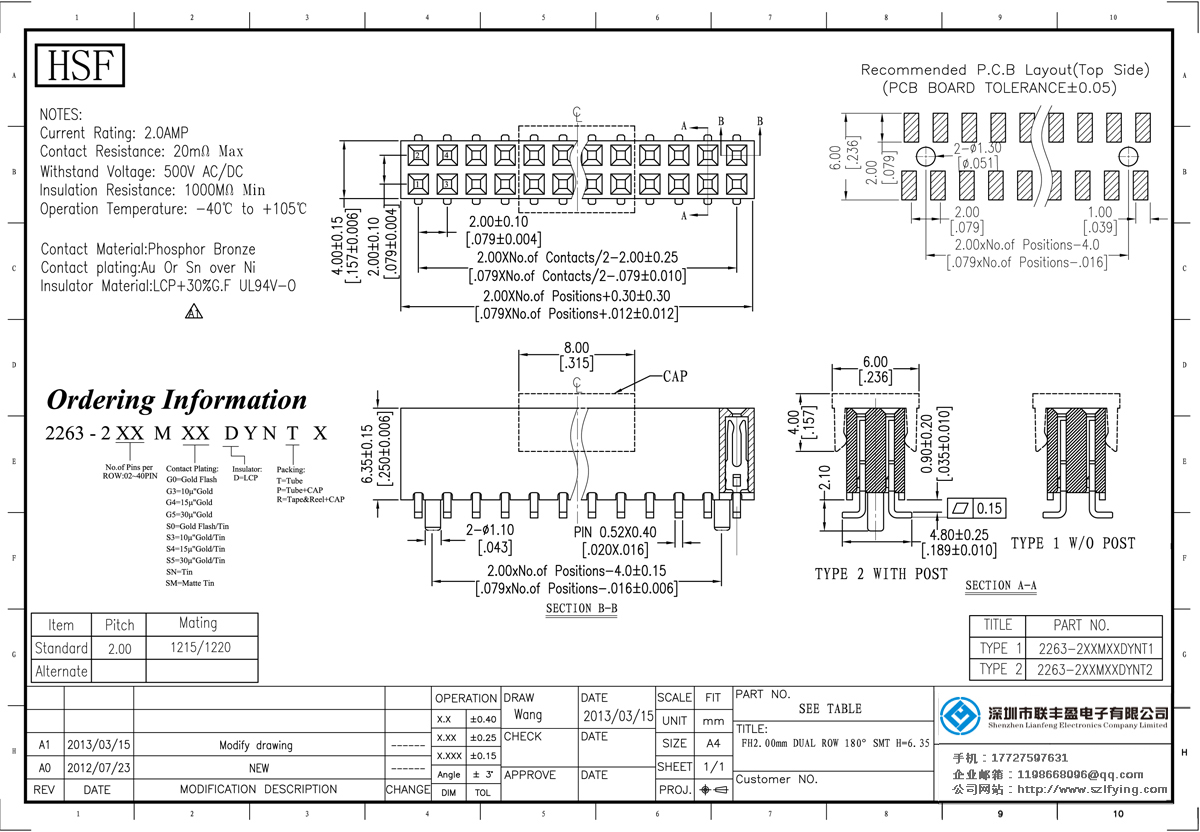 產(chǎn)品分類(lèi):排母連接器 產(chǎn)品規(guī)格:聯(lián)豐盈 2.0 排母 SMT LCP料黑色 H=6.35 連接器 產(chǎn)品介紹:額定電流:2.0amp電流電阻:20m最大絕緣電阻:1000m民承受電壓:AC 500V /分鐘工作溫度:55﹣℃+ 1