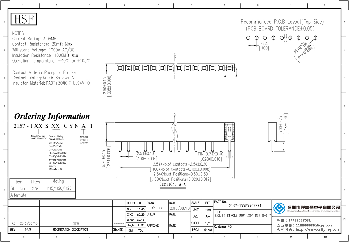 產(chǎn)品分類:排母連接器 產(chǎn)品規(guī)格:2.54mm 母頭、單排、直腳 產(chǎn)品介紹:電流評(píng)級(jí):3.0amp電流電阻:20m最大絕緣電阻值:1000m耐受電壓1000V AC /分鐘:分鐘操作溫度:﹣40℃to + 105℃:磷青銅