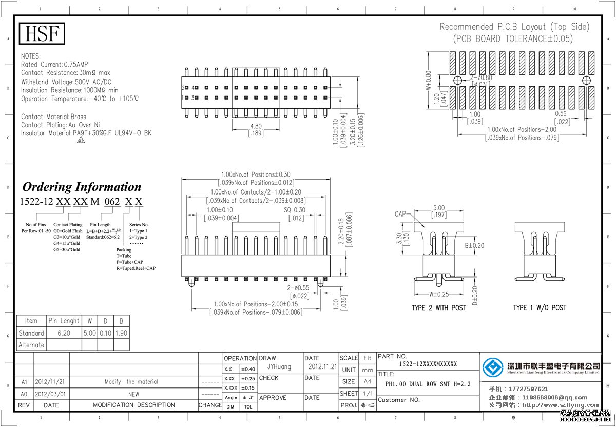 產(chǎn)品分類:排針連接器 產(chǎn)品規(guī)格:1.0 MM 卷帶裝(加夾持蓋)排針 供應(yīng)商 技術(shù)參數(shù):額定電流:0.75amp電流電阻:20m最大絕緣電阻:1000m承受電壓:AC 500V /分鐘工作溫度:40﹣℃+ 105℃接