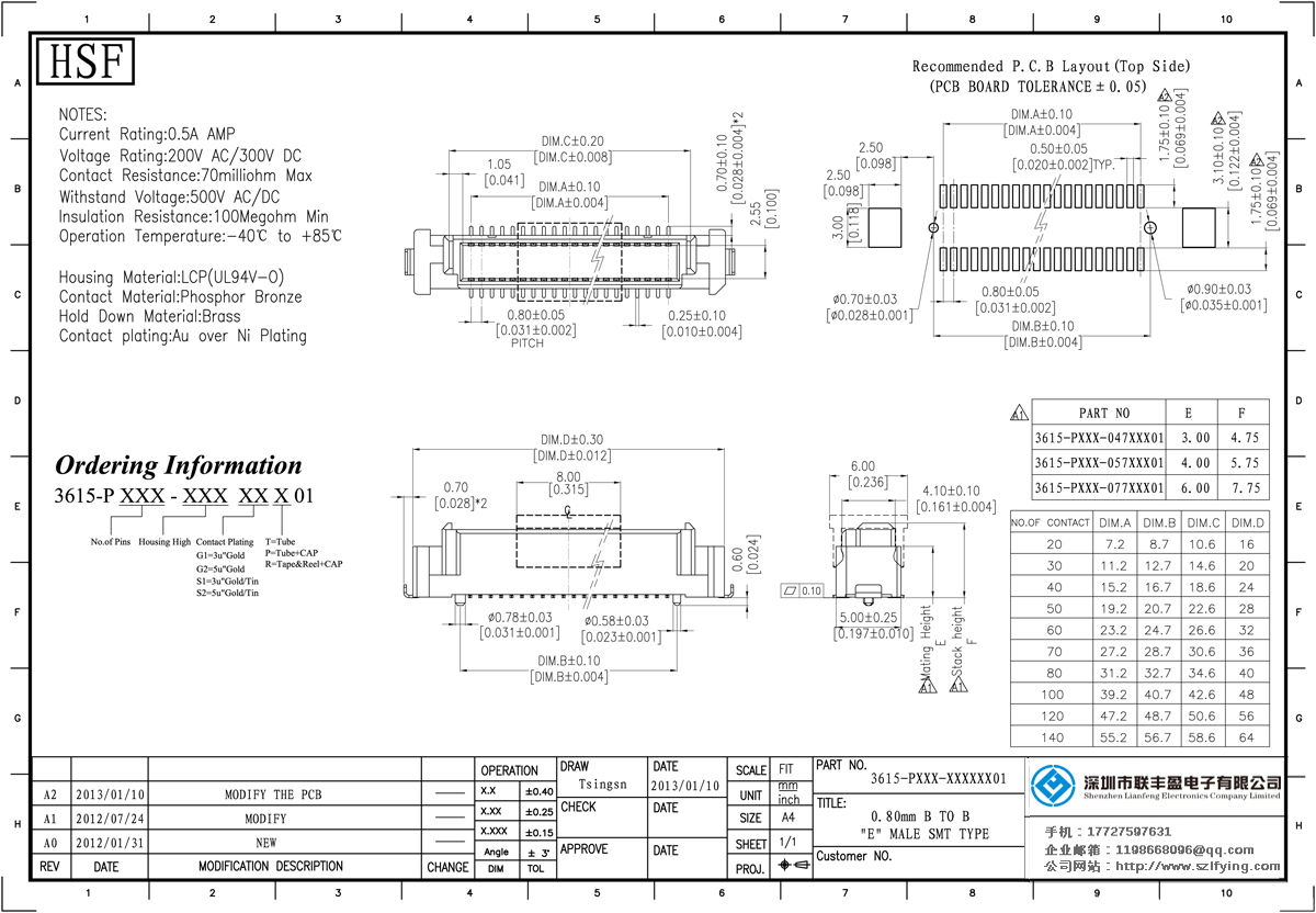 產(chǎn)品分類:Board To Board 連接器 產(chǎn)品型號:0.8MM 母座 單槽結(jié)構(gòu)DDK型 Board To Board 聯(lián)豐盈 技術(shù)參數(shù):額定電流:0.5amp電流電阻:65m最大絕緣電阻:1000m承受電壓:交流250V /分鐘工作溫度: