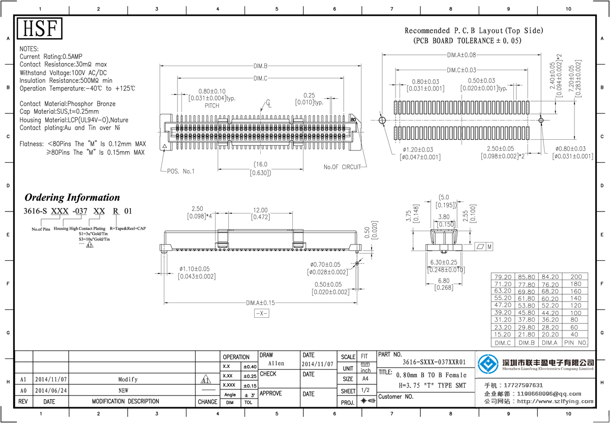 產(chǎn)品分類:Board To Board 連接器 產(chǎn)品型號:0.8MM 母頭 BTB T型 Board To Board 聯(lián)豐盈 技術(shù)參數(shù):額定電流:0.5amp電流電阻:30m最大絕緣電阻:100m承受電壓:AC 500V /分鐘工作溫度:40﹣℃+ 105℃