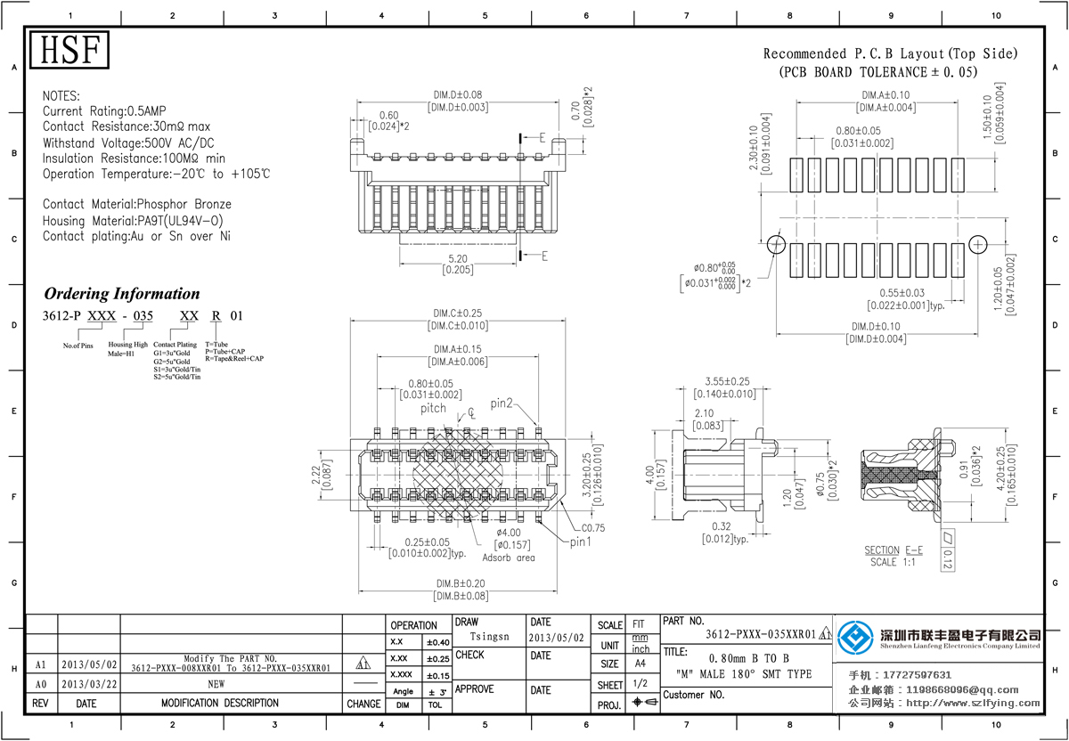 產(chǎn)品分類(lèi):Board To Board 連接器 產(chǎn)品型號(hào):0.8MM 公座 單槽結(jié)構(gòu) Board To Board 生產(chǎn) 聯(lián)豐盈 技術(shù)參數(shù):額定電流:0.5amp電流電阻:20m最大絕緣電阻:100m承受電壓:AC 500V /分鐘工作溫度:20﹣