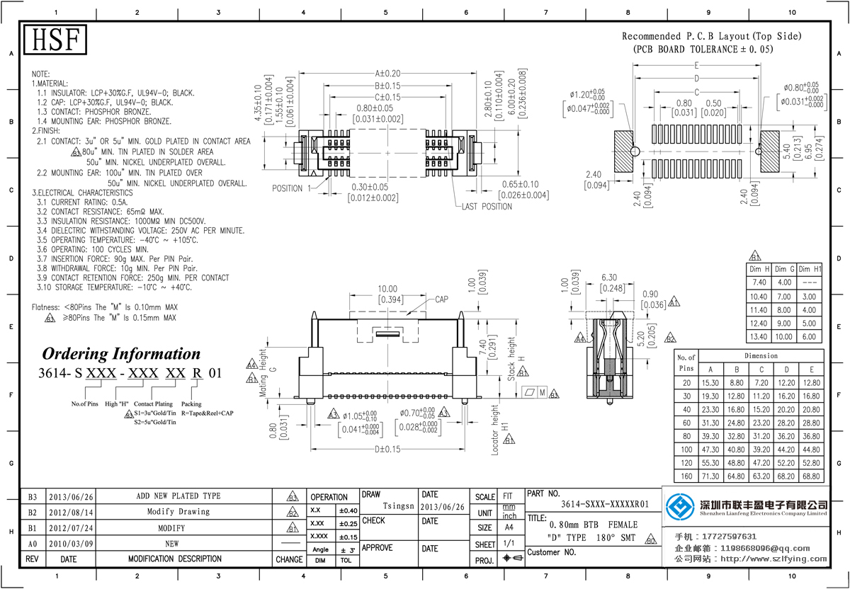 產(chǎn)品分類:Board To Board 連接器 產(chǎn)品型號(hào):0.8MM 公座 單槽結(jié)構(gòu)DDK型 Board To Board聯(lián)豐盈 技術(shù)參數(shù):額定電流:0.5amp電流電阻:65m最大絕緣電阻:1000m承受電壓:交流250V /分鐘工作溫度:4